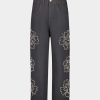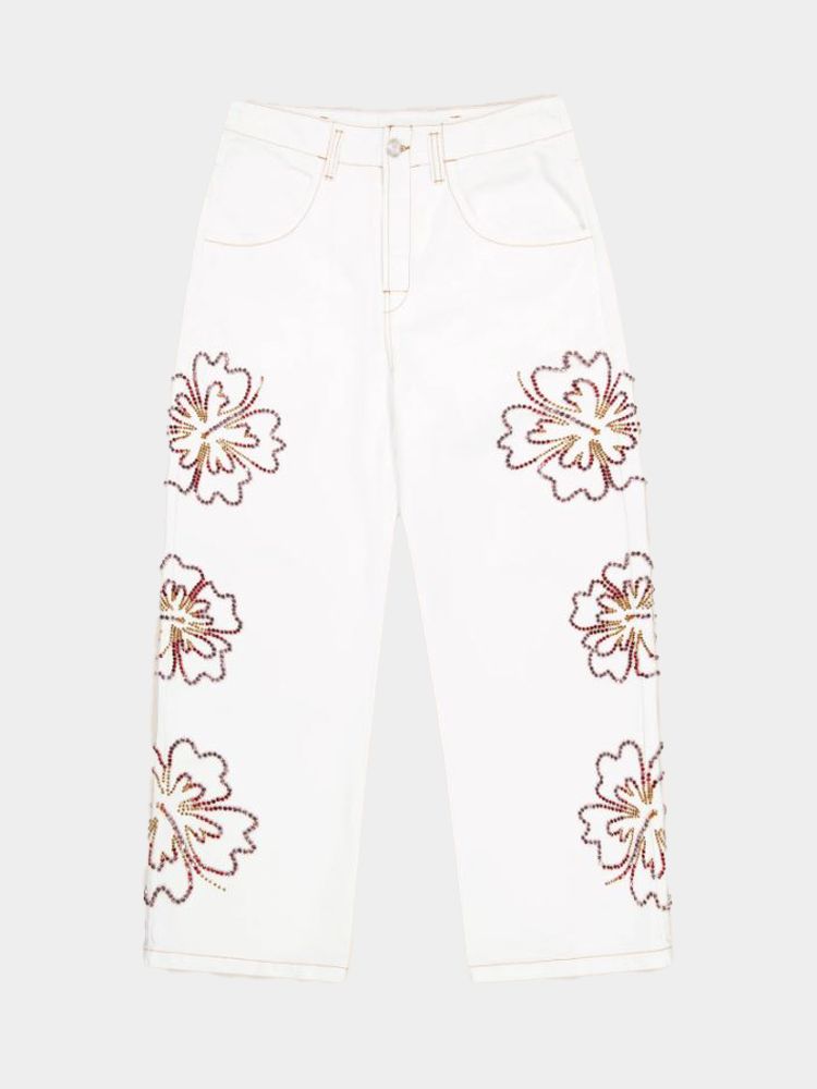 우븐 자수 히비스커스 데님 팬츠