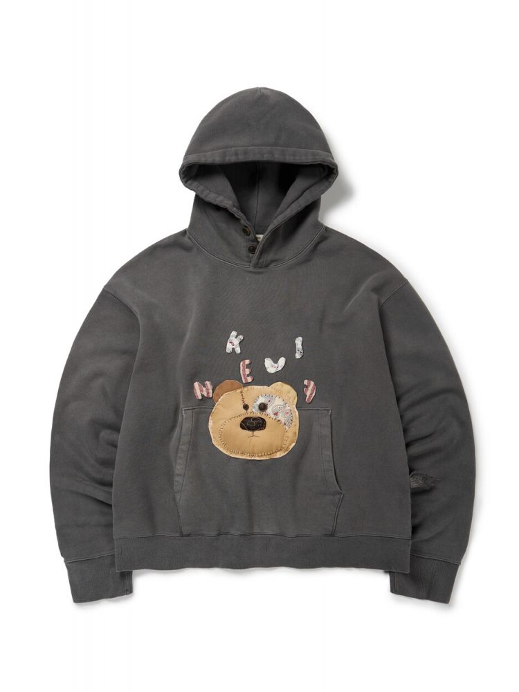 KUS 베어 패치워크 헤비 후드 [목탄 염색]